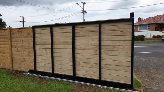 To talk to us about a Driveway – Aluminium frame, timber panelling Gate: